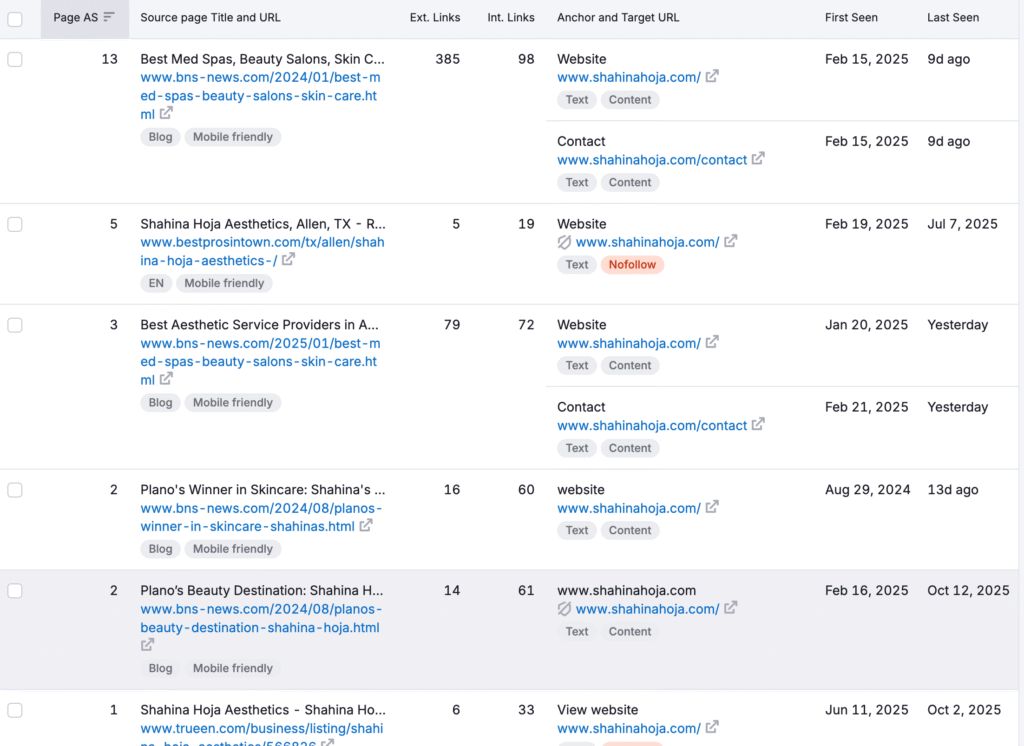 - Added local citations on top directories (Yelp, Healthgrades, RealSelf, etc.).